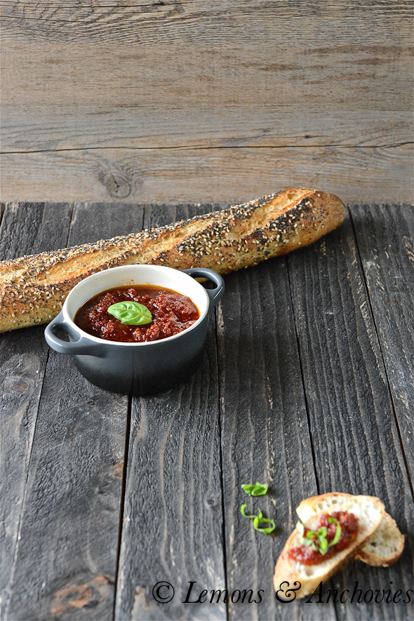 Yes! Anything with sundried tomatoes, anchovies, and roasted garlic = scrumptious!!!! And look at that vibrant deep red-orange shade…just lovely. Accompanied by that stunning baguette…I feel like I’m in the Mediterranean. Sigh…