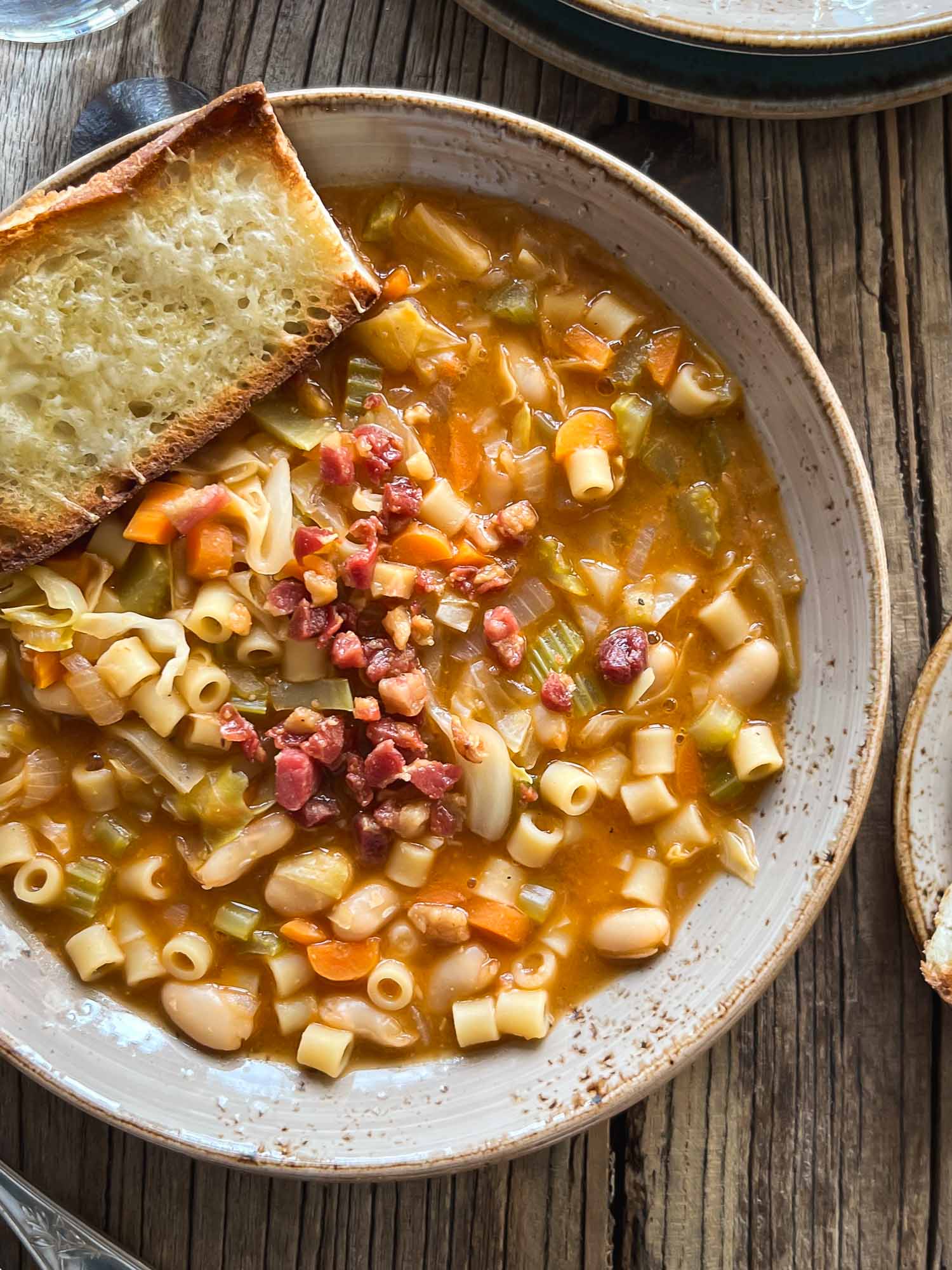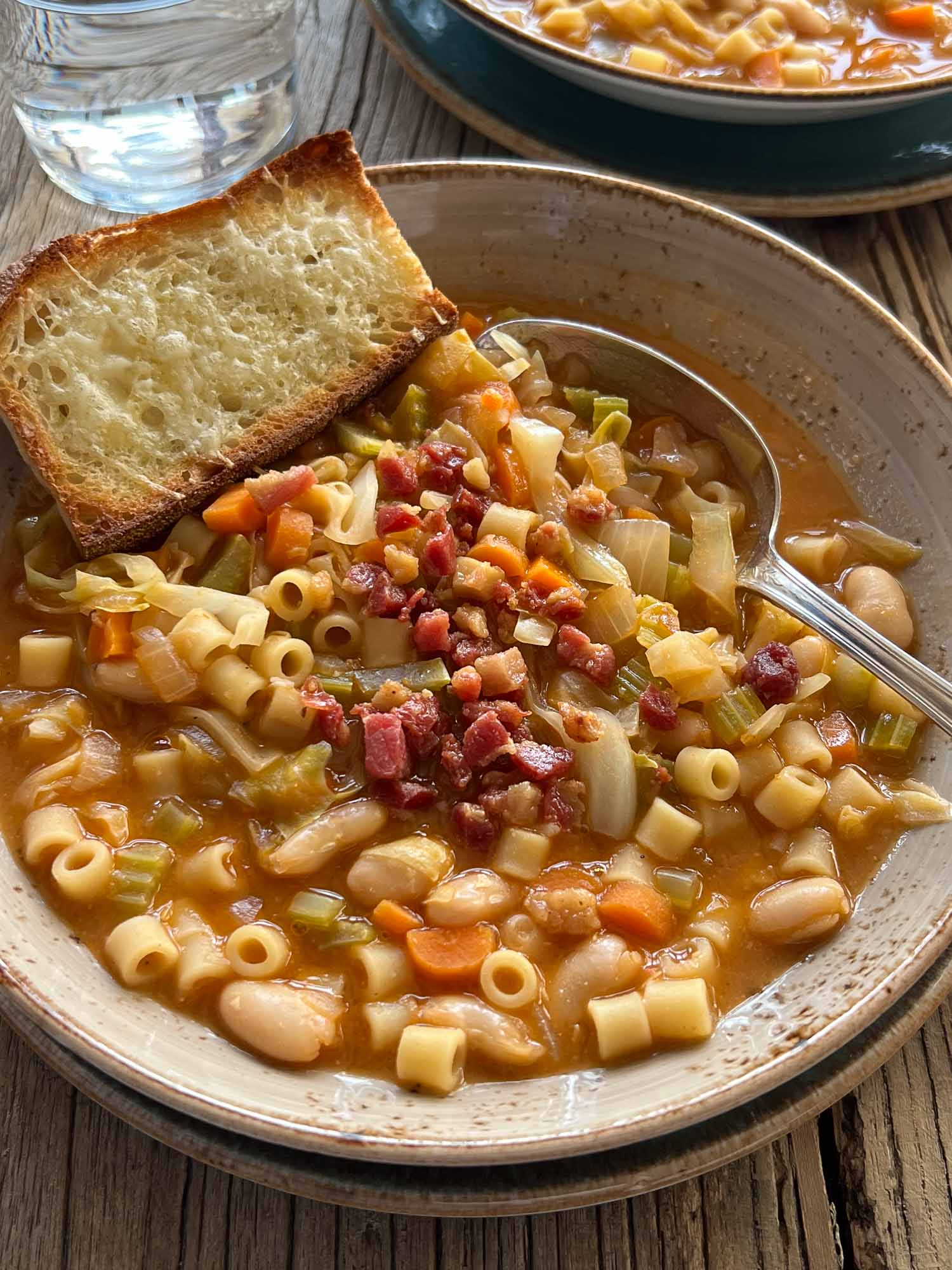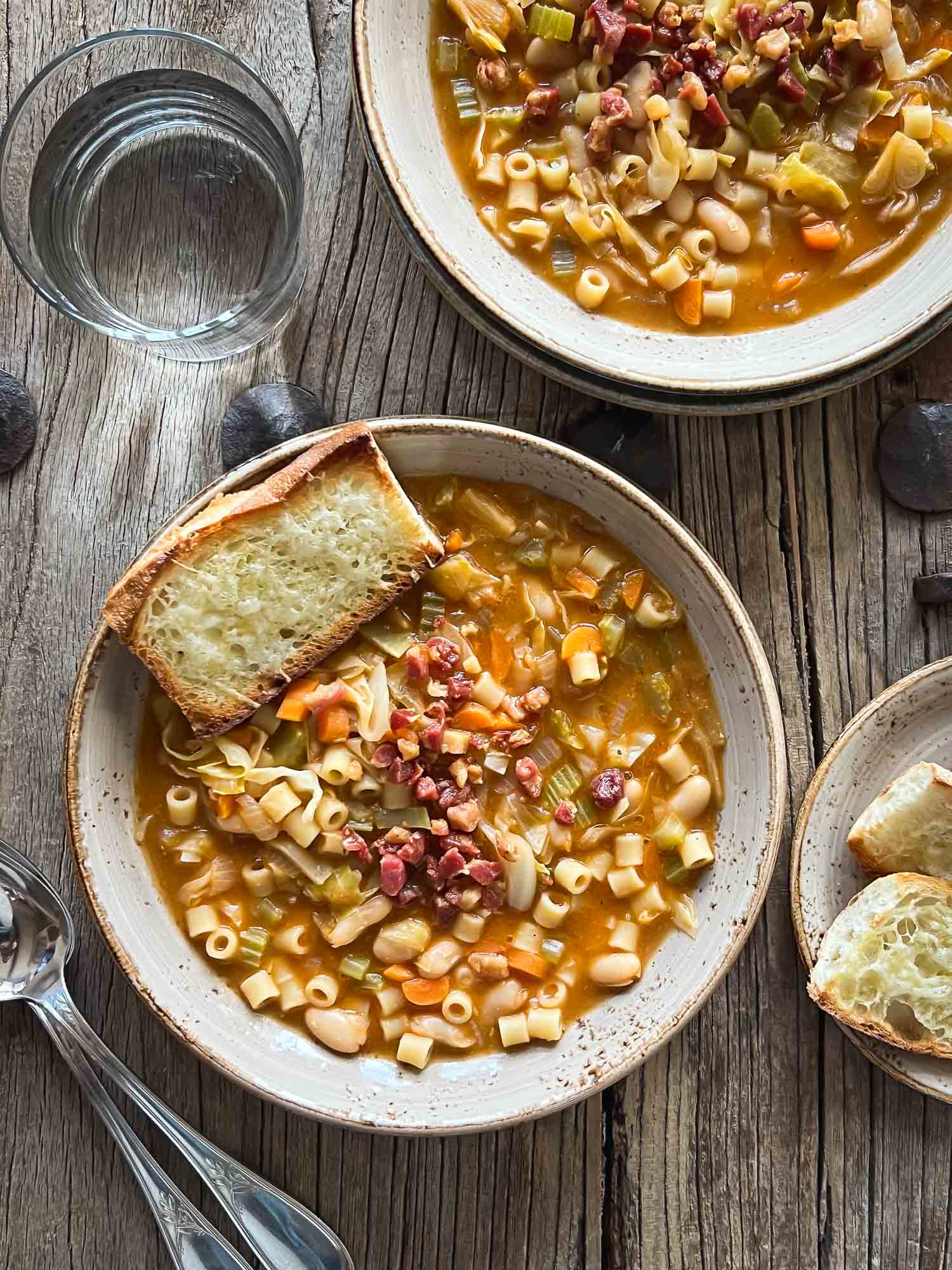 Pasta and beans are the base for this thick, hearty and comforting soup. An Italian classic, there are countless variations and it's vegetarian/vegan friendly.