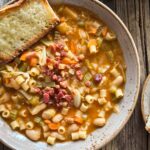 Pasta and beans are the base for this thick, hearty and comforting soup. An Italian classic, there are countless variations and it’s vegetarian/vegan friendly.